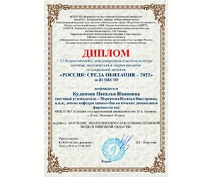 ПОЗДРАВЛЯЕМ С ПОБЕДОЙ ВО ВСЕРОССИЙСКОМ КОНКУРСЕ «РОССИЯ: СРЕДА ОБИТАНИЯ – 2022»